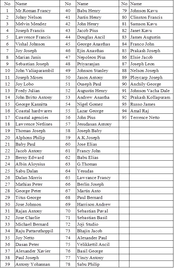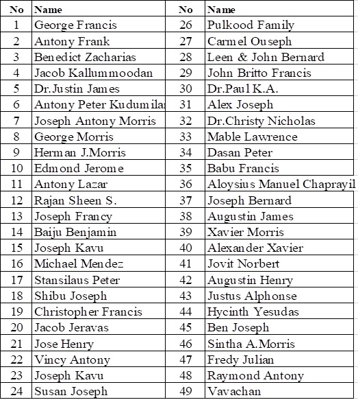 Vincent de Paul conference, Sakthikulangara (VDPCS) had been blessed with the financial and moral support of a good number of philanthropists, some of them very exceptional personalities, who rose to eminence from this parish. Dr.Joseph Austin, and Mr.Bernard Morris (Bernard Sir) to mention two. These names will ever be recorded in the history of this conference for their contribution for noble missions which they voluntarily became part of.